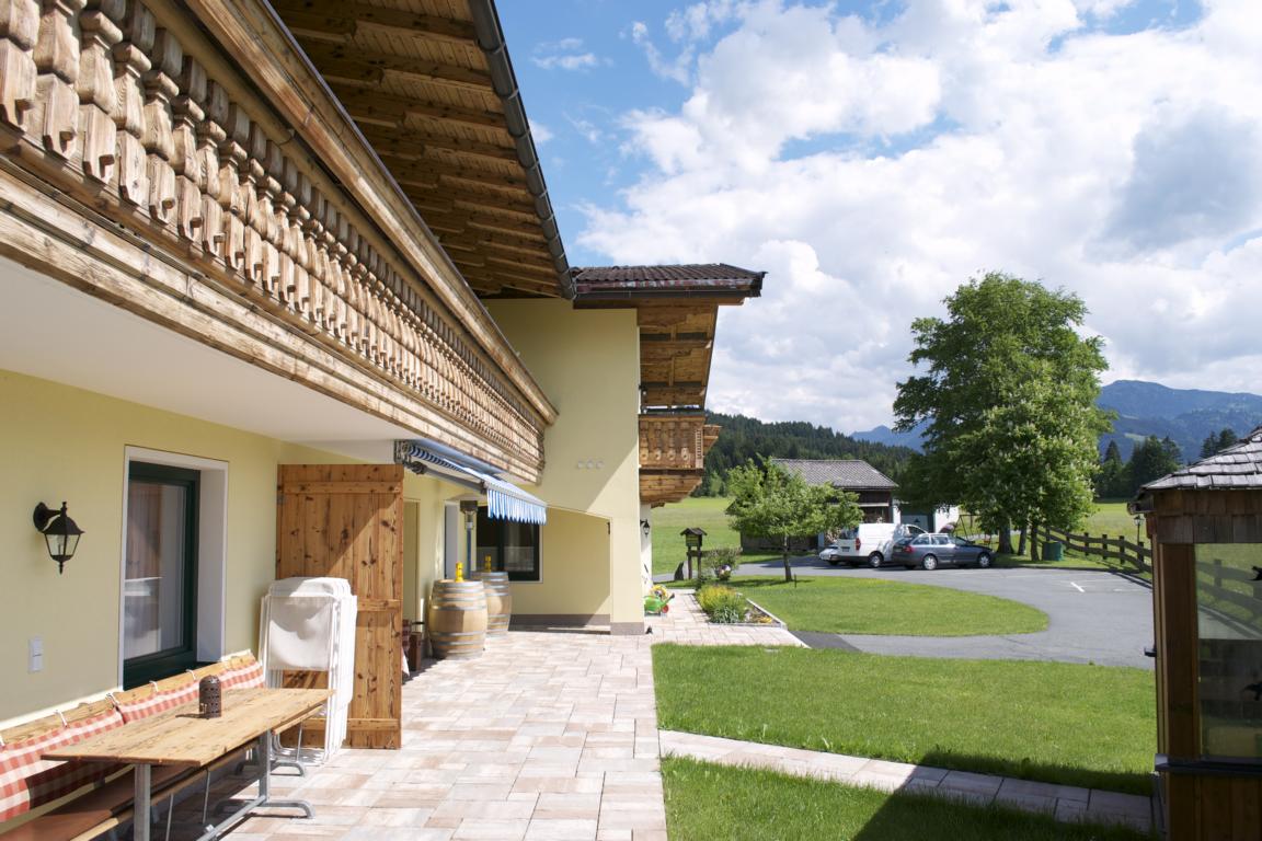 Surrounded by lovely meadows and set against the backdrop of the Wilder Kaiser and the Kitzbüheler Horn, our Tyrolean-style guest house is only three minutes away from Kirchdorf and St. Johann.