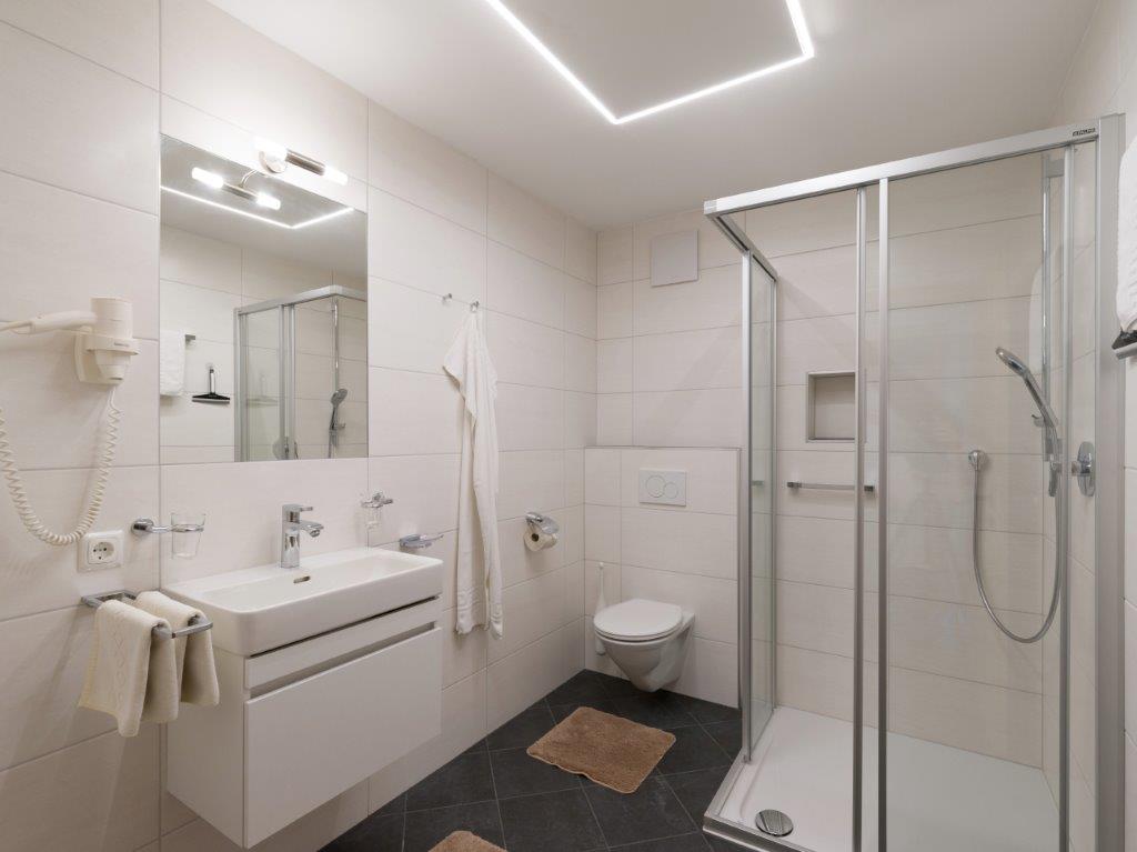 Unser Haus, in den 70‘er Jahren erbaut, wurde ständig erweitert und modernisiert. Alle Zimmer sind mit Dusche/WC und SAT‐TV ausgestattet. Teilweise mit Balkon und barrierefrei zugänglich.