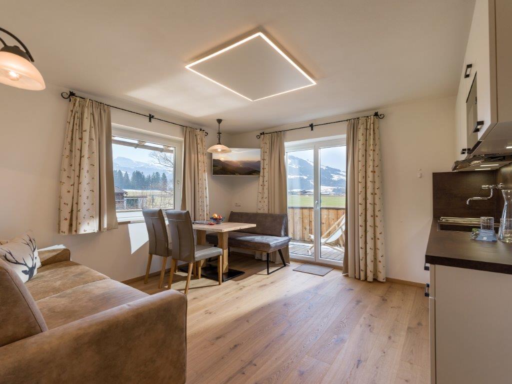 Immer im Preis enthalten ist der Blick nach draußen – ob auf das Kitzbüheler Horn oder das Kaisergebirge, auf alle Fälle beeindruckend....